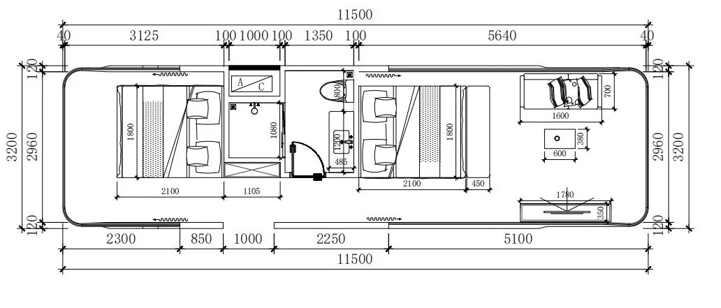 Internal configuration (27,2 м²) Ceiling: High quality environmentally friendly fiber board with fine aluminum alloy finishing. Wall: High quality eco-friendly