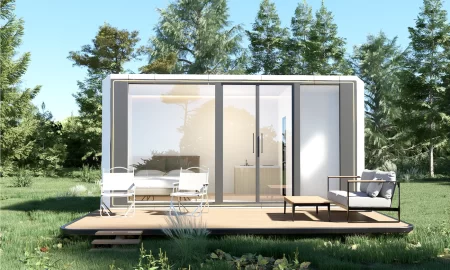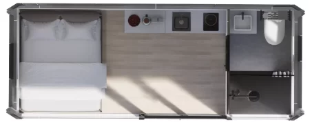 The Volferda VL-A2 and VL-A1 houses differ in size. The VL-A2 is 3 meters wide and 3.2 meters high, while the VL-A1 is 2.25 meters wide and 2.45 meters high. At home, the VL-A2 uses bamboo panels for the interior. Bamboo panels are the best material on the Russian market and are made from compressed bamboo covered with lamination. These panels are more environmentally efficient than HPL plastic.